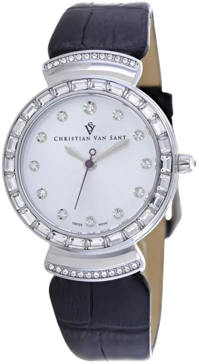 Stainless steel case, Leather strap, Silver dial, Quartz movement, Scratch resistant mineral, Water resistant up to 3 ATM - 30 meters - 100 feet