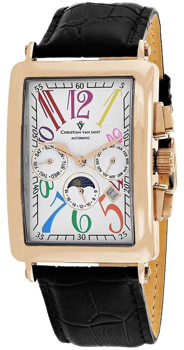 Stainless steel case, Leather strap, White dial, Automatic movement, Scratch resistant mineral, Water resistant up to 5 ATM - 50 meters - 165 feet