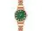 Mineral crystal lens; Matte green dial with rose gold-tone hands and Roman numerals; Printed outer and inner minute tracks