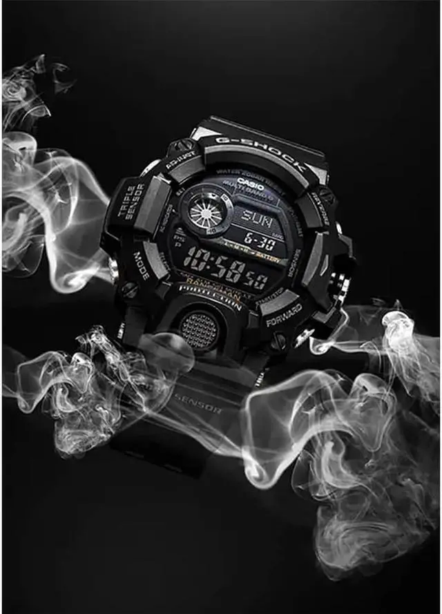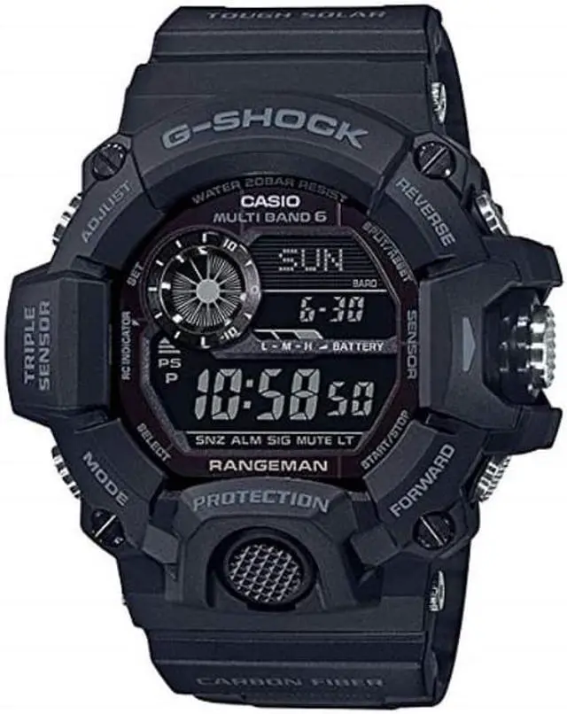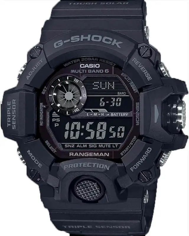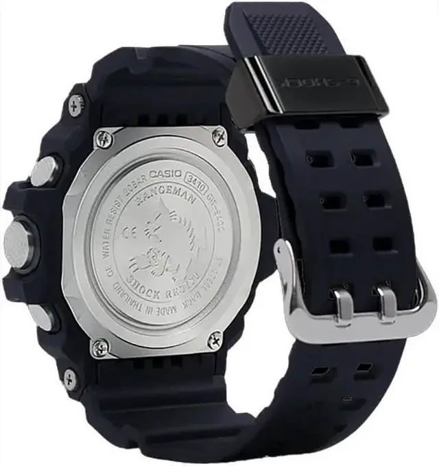 This is the latest model from MASTER OF G, the G-SHOCK series of watches designed and engineered for use by those whose work takes them into extreme environments scattered with rubble, dirt, and debris. The basic black coloring of this model further enhances the rough and tough look of the resin material and the MASTER OF G design. Base model is the RANGEMAN GW9400 with a time stamp feature that lets you record the current time in memory with the touch of a button.