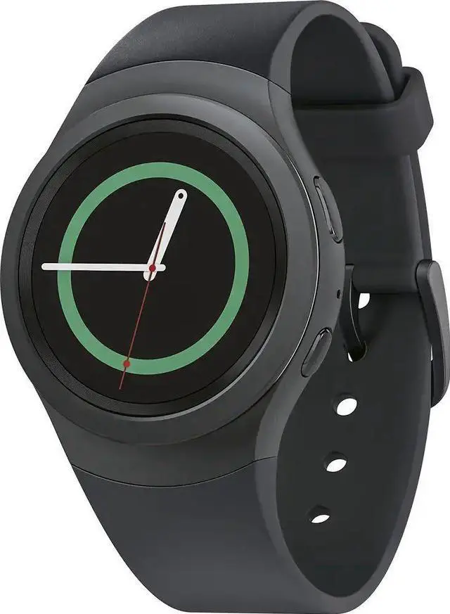 The Samsung Gear S2 Smartwatch features a sleek, minimalist design with a durable stainless steel case and a comfortable black elastomer band. Designed for intuitive interaction, it includes a unique rotating bezel and a vibrant circular touchscreen display. Stay on top of your day with notifications, fitness tracking, and access to essential appsall right on your wrist. This model provides seamless connectivity and style for daily use.