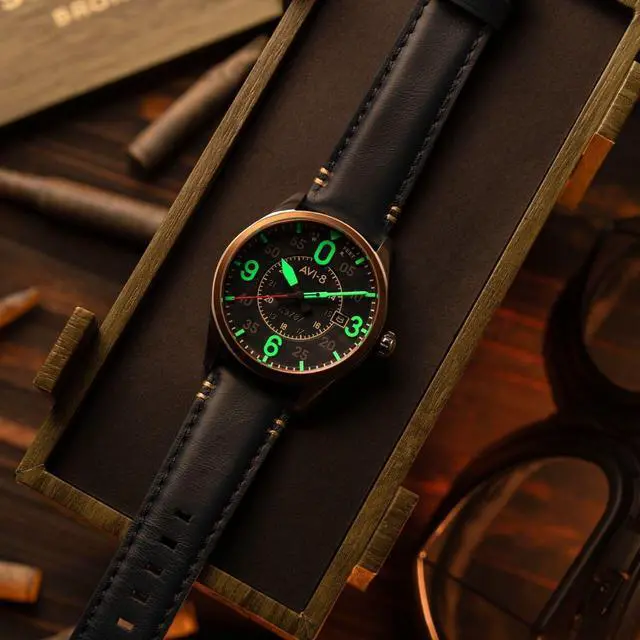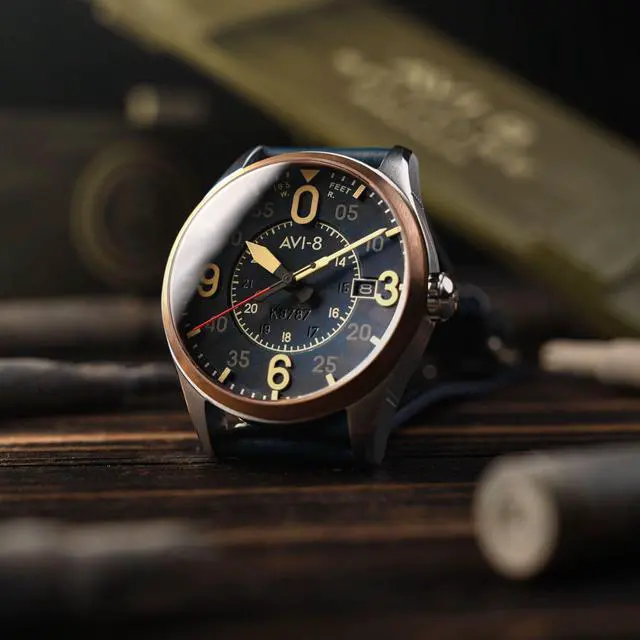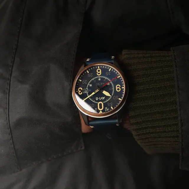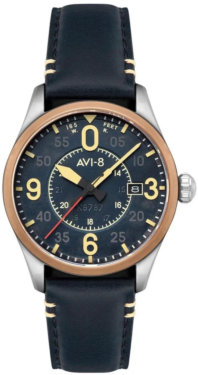 AVI-8 Spitfire Smith Distressed Blue Leather Strap Blue Dial Automatic AV-4090-05 Men's Watch