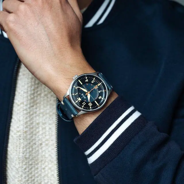 Experience the refined craftsmanship of the AVI-8 AV-4094-02, highlighted by its captivating blue dial that embodies the essence of sophistication. This watch features a reliable automatic movement, ensuring precise timekeeping without the need for a battery. The Sussex leather strap not only adds a touch of elegance but also guarantees comfortable wear for every wrist. The watch's detailed design and transparent case back offer a glimpse into the intricate workings of its automatic movement, blending both style and engineering. With the AVI-8 AV-4094-02, you're not just wearing a watch; you're embracing a legacy of aviation-inspired excellence.