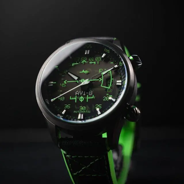 AVI-8 Hawker Harrier HUD Leather Strap Gradient Black Dial Automatic AV-4117-02 Men's Watch