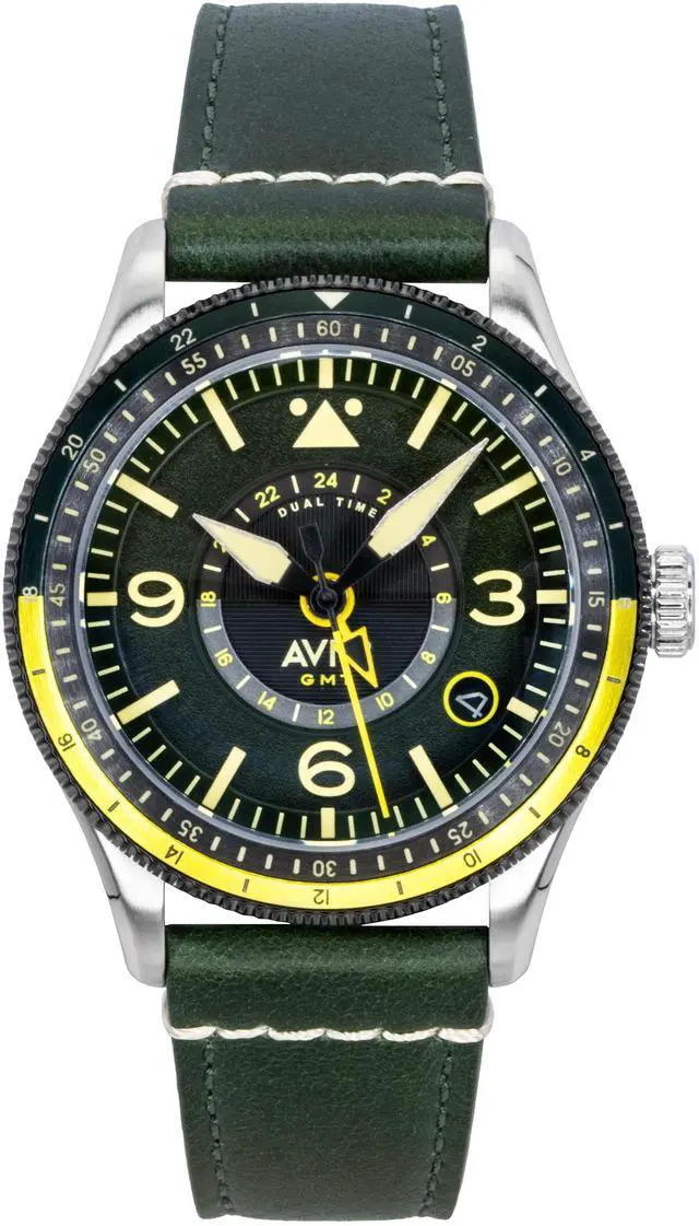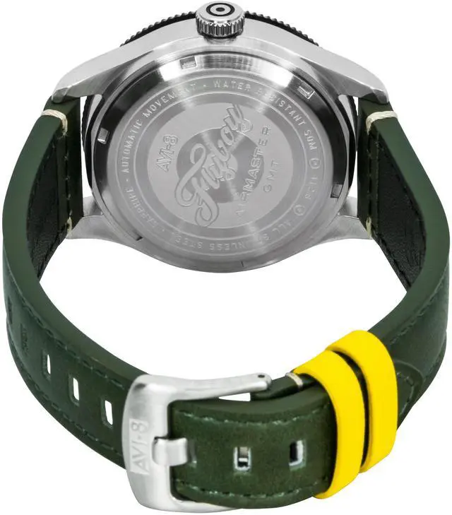 AVI-8 Flyboy Airmaster GMT Fuselage Green Leather Strap Green Dial Automatic AV-4128-03 Men's Watch