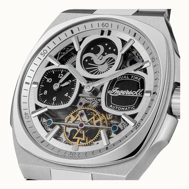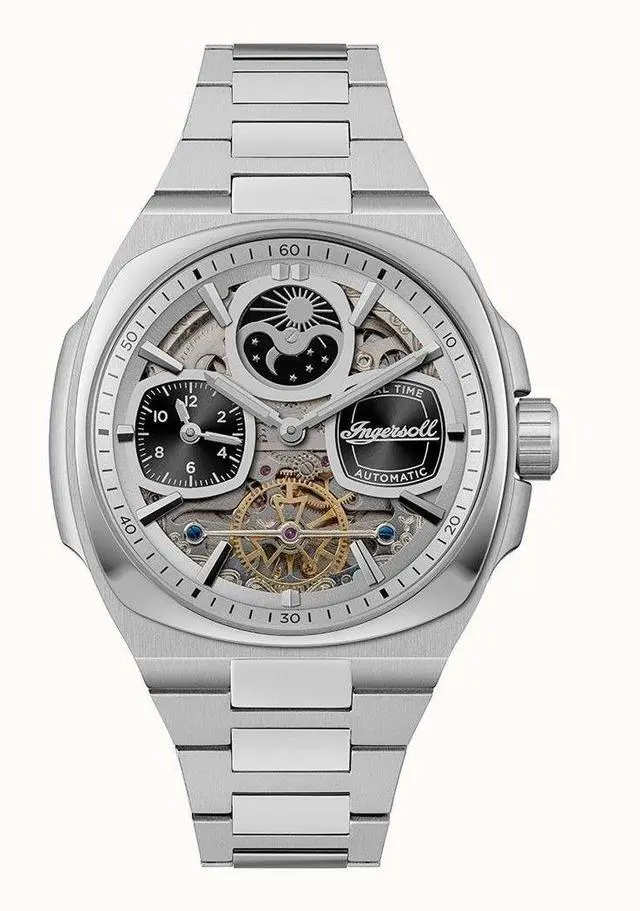 Ingersoll The Spirit Moon Phase Stainless Steel Silver Skeleton Dial Automatic I15802 Men's Watch