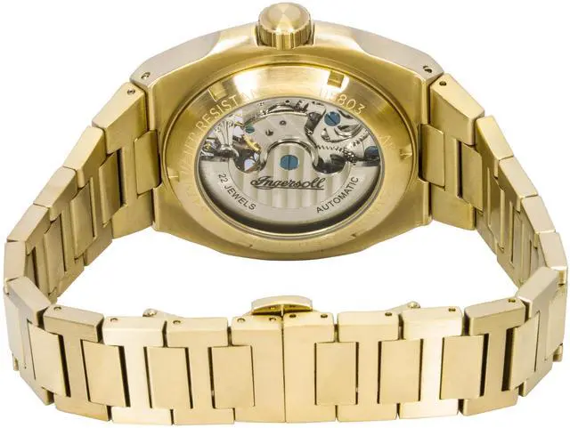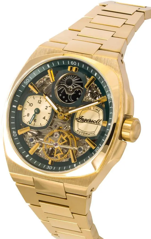 Ingersoll The Spirit Gold Tone Stainless Steel Green Skeleton Dial Automatic I15803 Men's Watch
