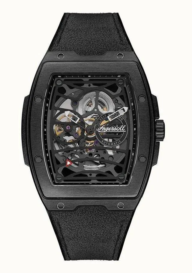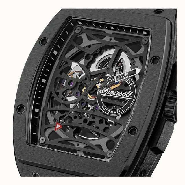 Ingersoll The Challenger Black Skeleton Dial Automatic I12307 Men's WatchThe Ingersoll I12307 is a striking watch featuring a stainless steel case and a PU strap for both durability and comfort. The black skeleton dial, protected by a scratch-resistant mineral crystal, reveals the detailed automatic movement, highlighting its inner engineering. Key features include an analog display, a see-through case back, and a buckle clasp for secure wearing. With 50m water resistance, this watch is suitable for everyday wear and minor water exposure.