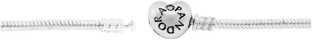 Pandora Sterling Silver Ladies Charm Bracelet 59071917. Heart shaped pandora clasp. 6.7 in / 17 cm. JEWLERY.