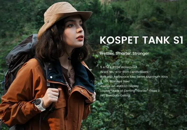 KOSPET Multi-functional TANK S1 SmartwatchHIFI Bluetooth to receive and make calls, AI voice assistant, women's menstrual period reminder, incoming call reminder, receive app messages (WeChat, QQ, Weibo, Facebook, Twitter, WhatsApp, Line, kakaoTalk, Instagram, Skype, etc. ). Smart sleep monitoring, pedometer, sedentary reminder, alarm clock, weather, music control, calculator. Bring more convenience, time and more to your life.