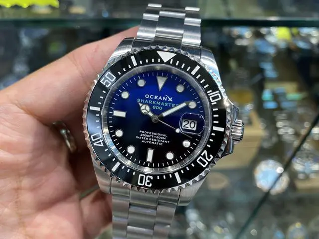 OceanX Sharkmaster 600 Automatic Men's Diver Watch 44mm Blue Dial