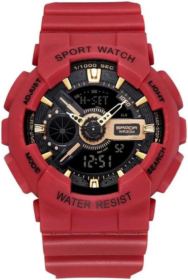 SANDA Outdoor Leisure Waterproof Multifunctional Luminous Electronic Watch (Sand Dark Red Women)