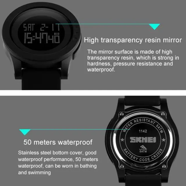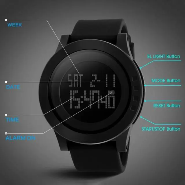 5. Function: stopwatch timing, luminous, display date, timed alarm, display week