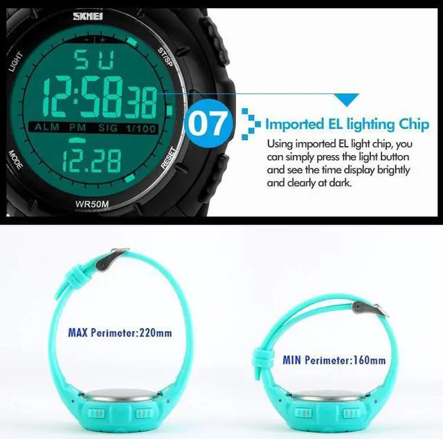 5. Function: stopwatch timing, luminous, display date, timed alarm, display week