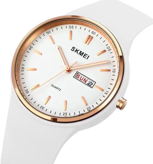 SKMEI 1747 Simple Bar scale Dial Silicone Strap Quartz Watch for Ladies (White)