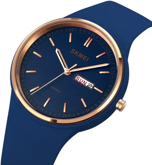 SKMEI 1747 Simple Bar scale Dial Silicone Strap Quartz Watch for Ladies (Navy Blue) Black