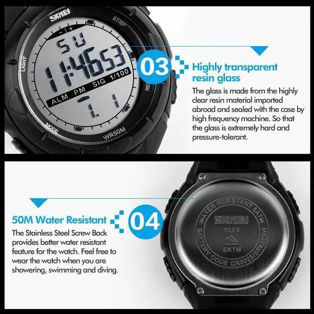 5. Function: stopwatch timing, luminous, display date, timed alarm, display week