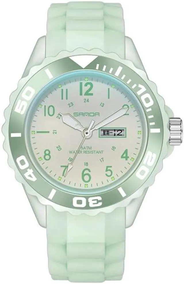 SANDA 1053 Womens TPU Strap Dual Display Waterproof Electronic Watch (Matcha Green)
