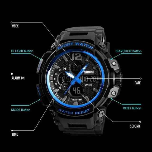 10. Functions: three-time display, stopwatch timing, luminous, date display, day of the week display, timer alarm, 12/24 hour system, countdown