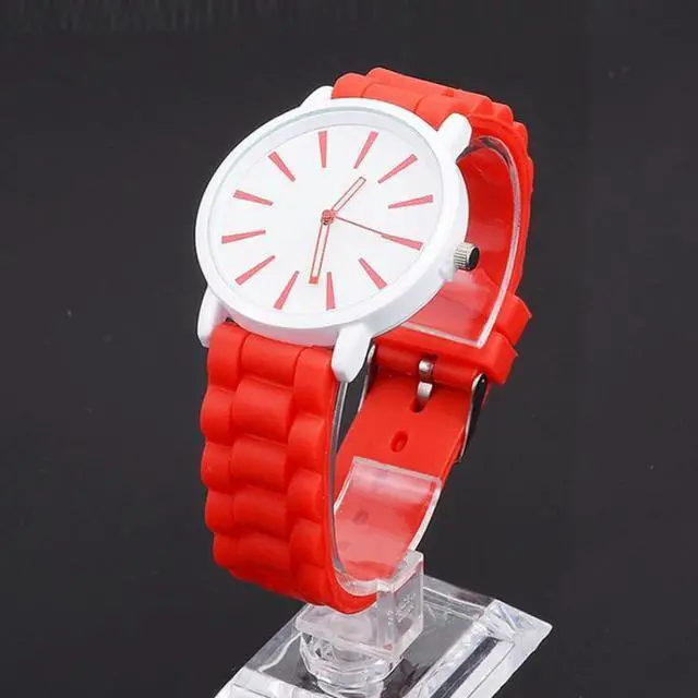 Simple Style Round Dial Jelly Silicone Strap Quartz Watch (Red)
