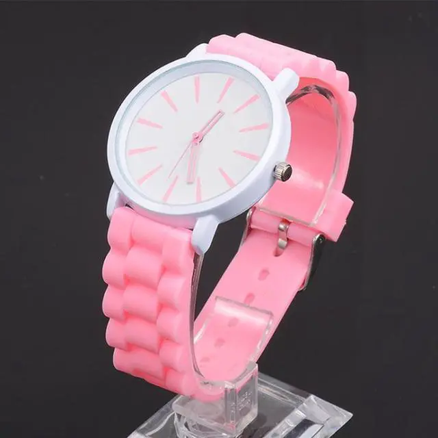 Simple Style Round Dial Jelly Silicone Strap Quartz Watch (Pink)