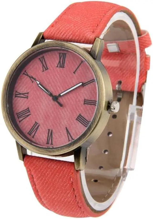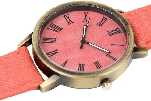 1. Brand new and high quality 2. Denim texture style 3. Round dial 4. Retro digital display 5. Quartz movement 6. PU leather band and metal watch case 7. Clasp Type: Buckle 8. Built-in button battery