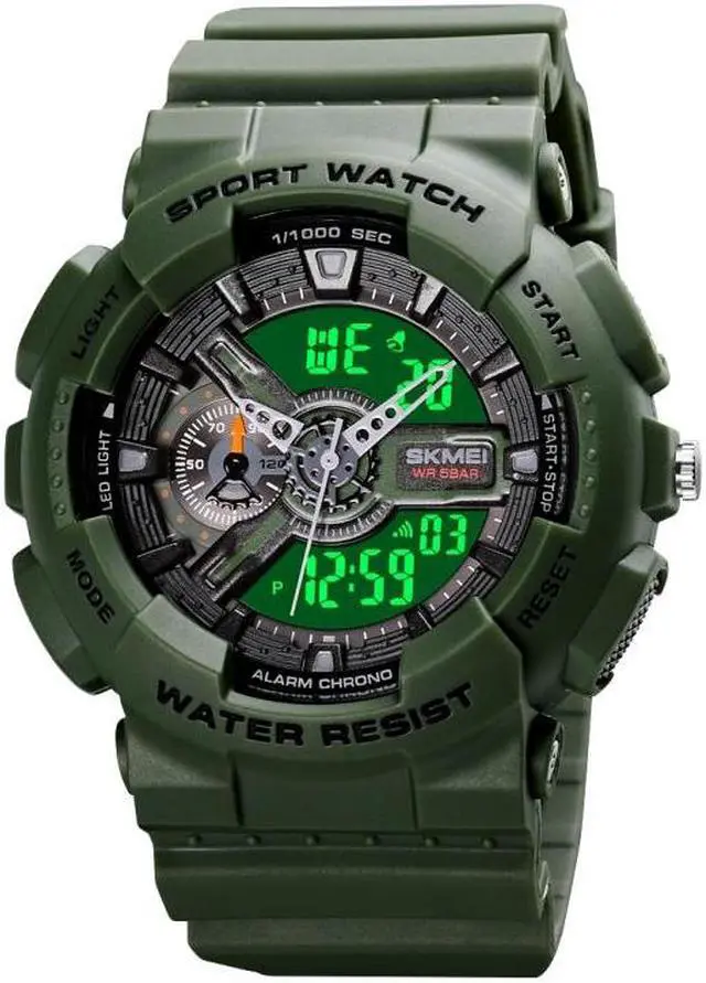 SKMEI 1688 LED Dual Time Digital Display + Pointer Luminous Sports Electronic Watch (Army Green)