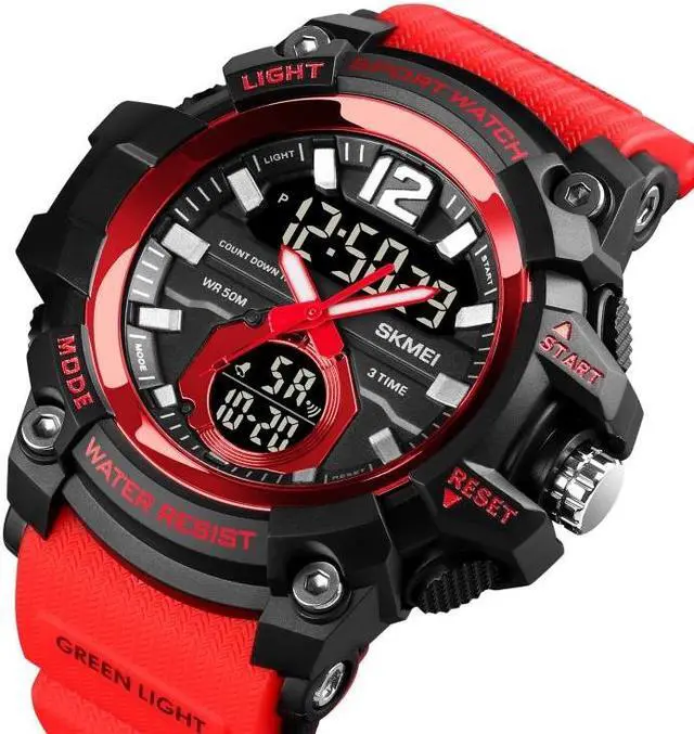 SKMEI 1725 Three Time LED Digital Display Timing Luminous Electronic Watch (Red)