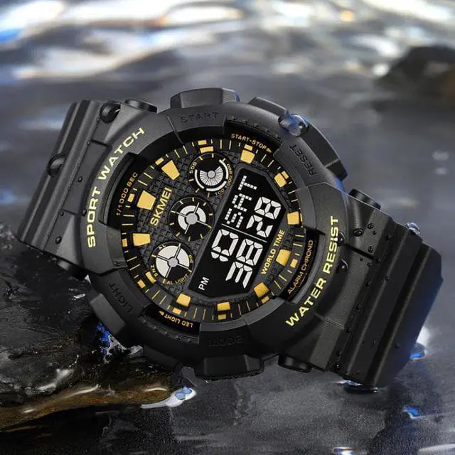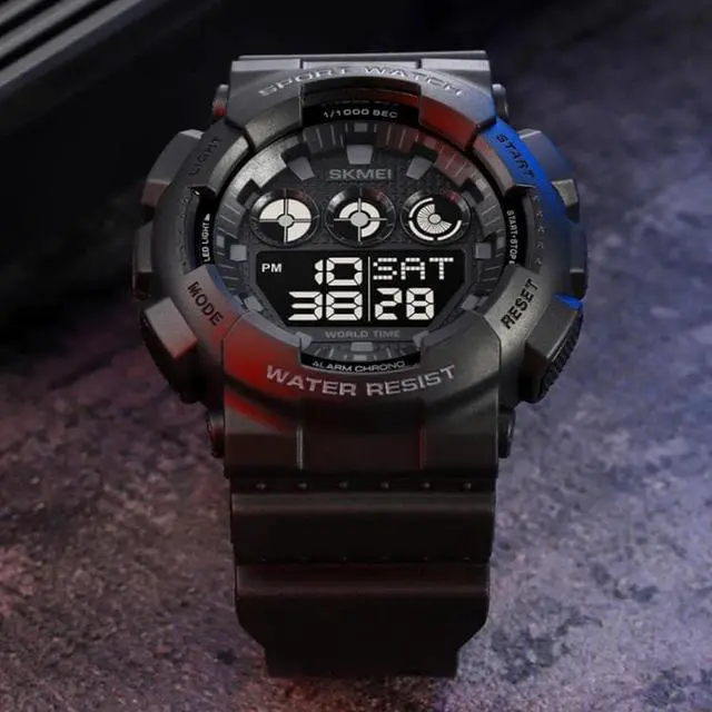7. Functions: world time, stopwatch timing, LED luminous, date display, 4 alarm clocks, week display, hourly timekeeping, 12/24 hour system, countdown, daylight saving time