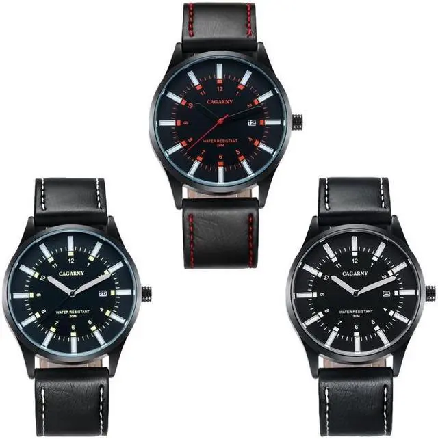 CAGARNY 6866 Fashion Dual Quartz Movement Wrist Watch with Genuine Leather Band (Style 2)