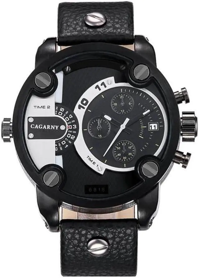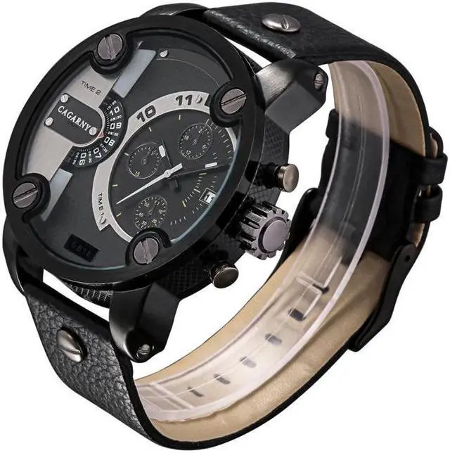 1. Fashionable large dial, quartz movement, trendy DZ style sport watch. 2. High quality leather band. 3. With life waterproof and calendar functions. 4. Clasp type: buckle. 5. Built-in battery.