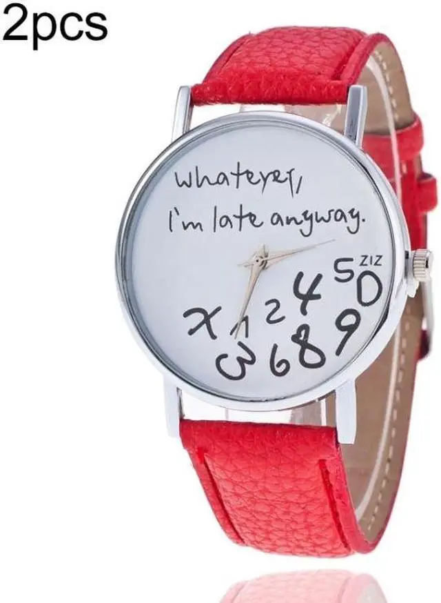 2 PCS Alphabet Number Pattern Leather Strap Watch (Red)