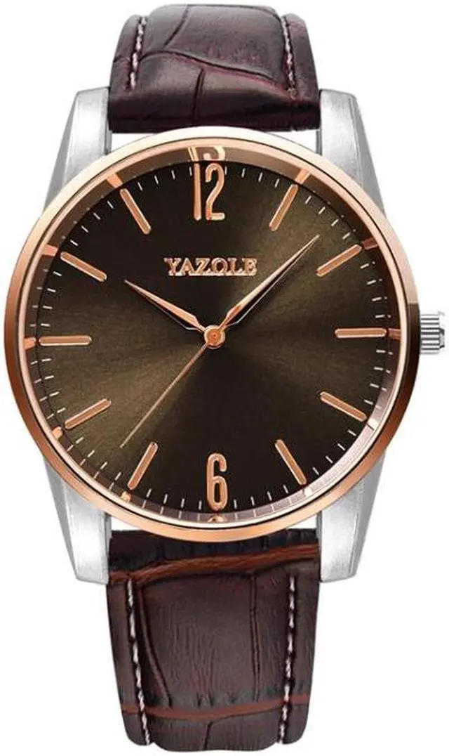 YAZOLE Simple Digital Two-color Dial Quartz Men Watch (542 Brown Tray Brown Belt)