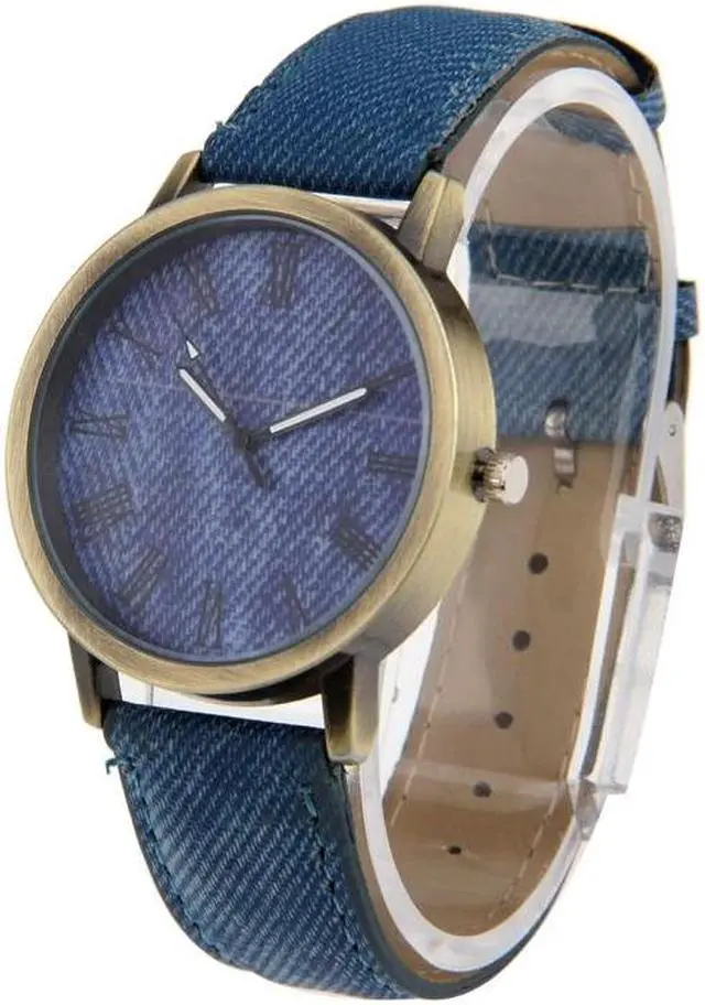 1. Brand new and high quality 2. Denim texture style 3. Round dial 4. Retro digital display 5. Quartz movement 6. PU leather band and metal watch case 7. Clasp Type: Buckle 8. Built-in button battery