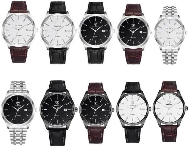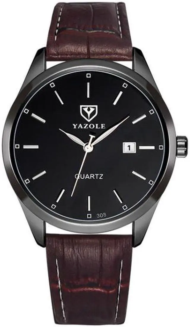 YAZOLE 308 Luminous Quartz Watch Men Watch (Black Shell Black Tray Brown Belt)