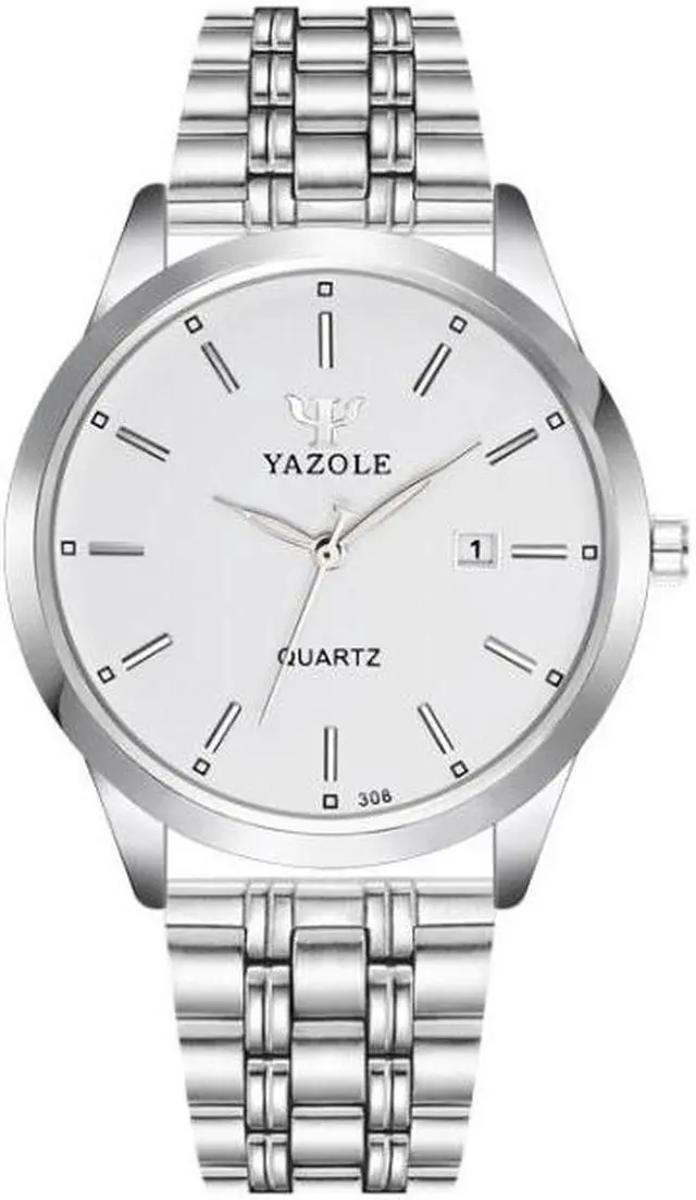 YAZOLE 308 Luminous Quartz Watch Men Watch (White Tray Silver Steel Strip)