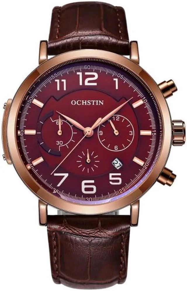 Ochstin 6105 Multi Function Watch Business Leisure Men Watch Waterproof Timing Quartz Watch Belt Watch (Coffee)