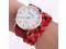 Women Round Dial Flower Diamond Studs Bracelet Watch (Red)