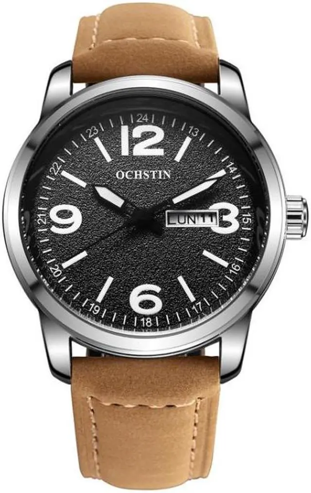 Ochstin 6047B Business Style Quartz Men Leather Watch (Silver+Khaki)
