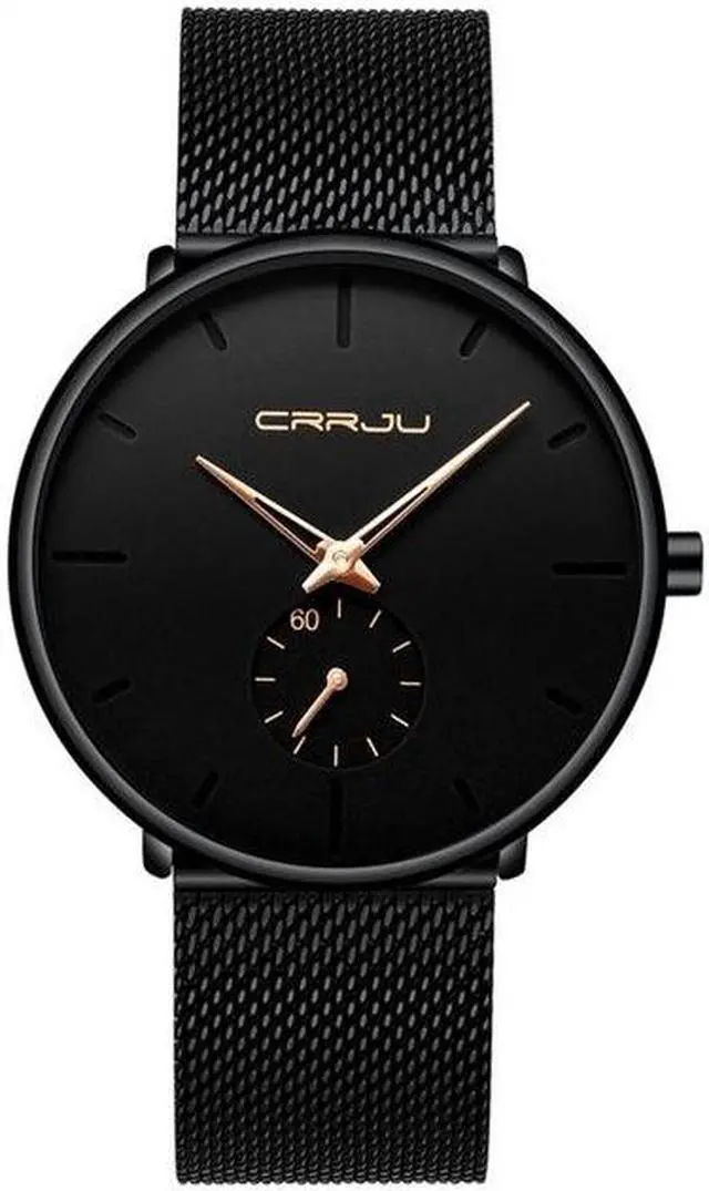 CRRJU 2150 Waterproof Round Dial Small Seconds Alloy Mesh Belt Quartz Watch for Men (Rose Gold Pointer)
