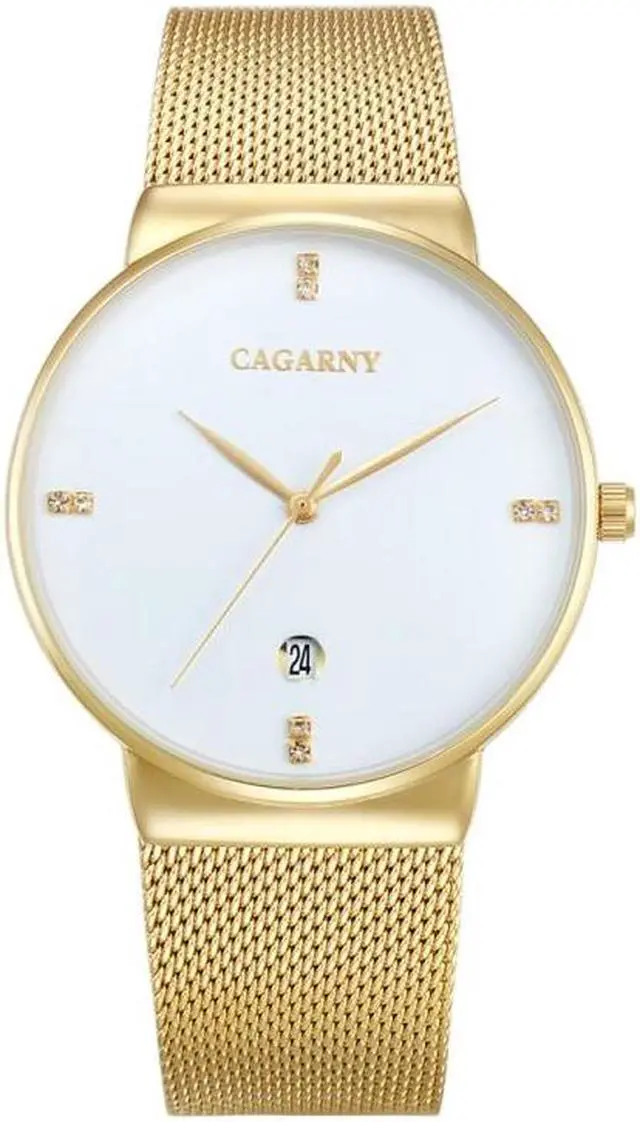 CAGARNY 6817 Living Waterproof Round Dial Quartz Movement Alloy Case Fashion Watch Quartz Watches with Steel Band (White)