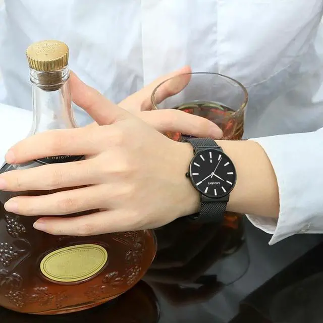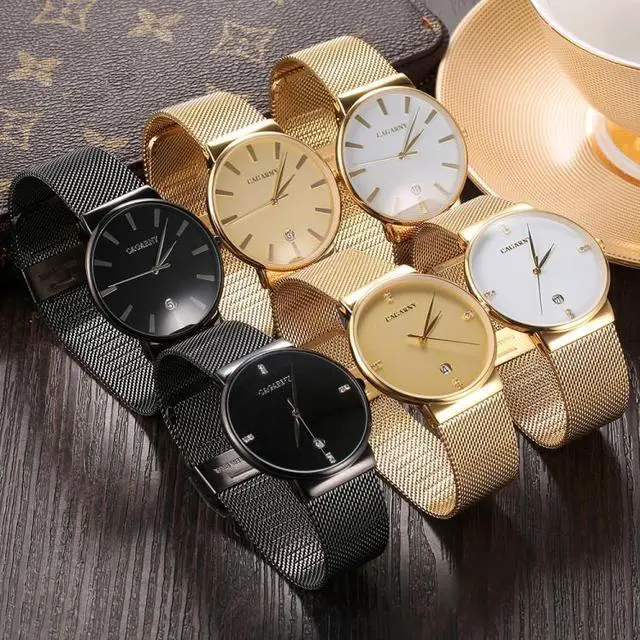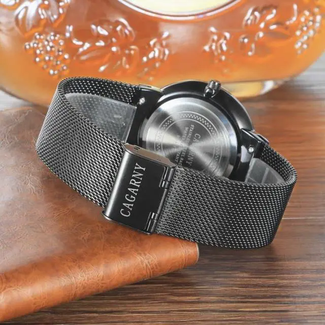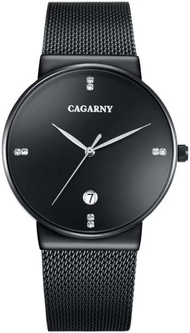 CAGARNY 6817 Living Waterproof Round Dial Quartz Movement Alloy Case Fashion Watch Quartz Watches with Steel Band (Black)