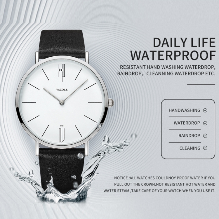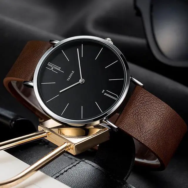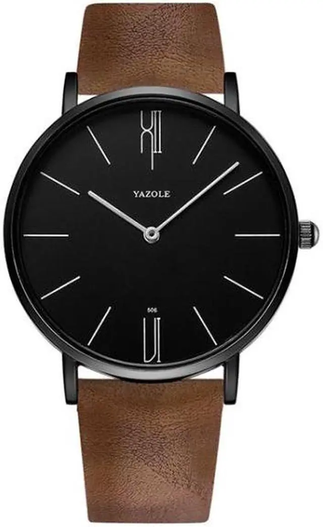 YAZOLE 506 Simple Large Scale Dial Men Business Quartz Watch (Black Shell Black Tray Brown Belt)