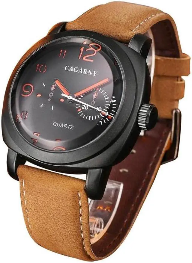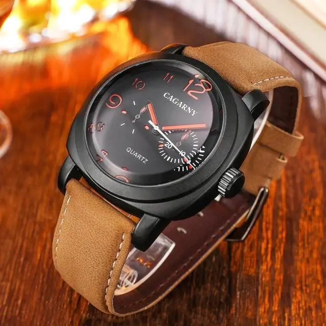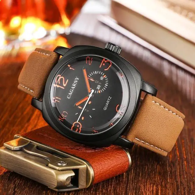 1. Fashionable quartz wrist watch for men. 2. High quality leather band and alloy case. 3. With life waterproof function. 4. Clasp type: buckle. 5. Built-in battery.