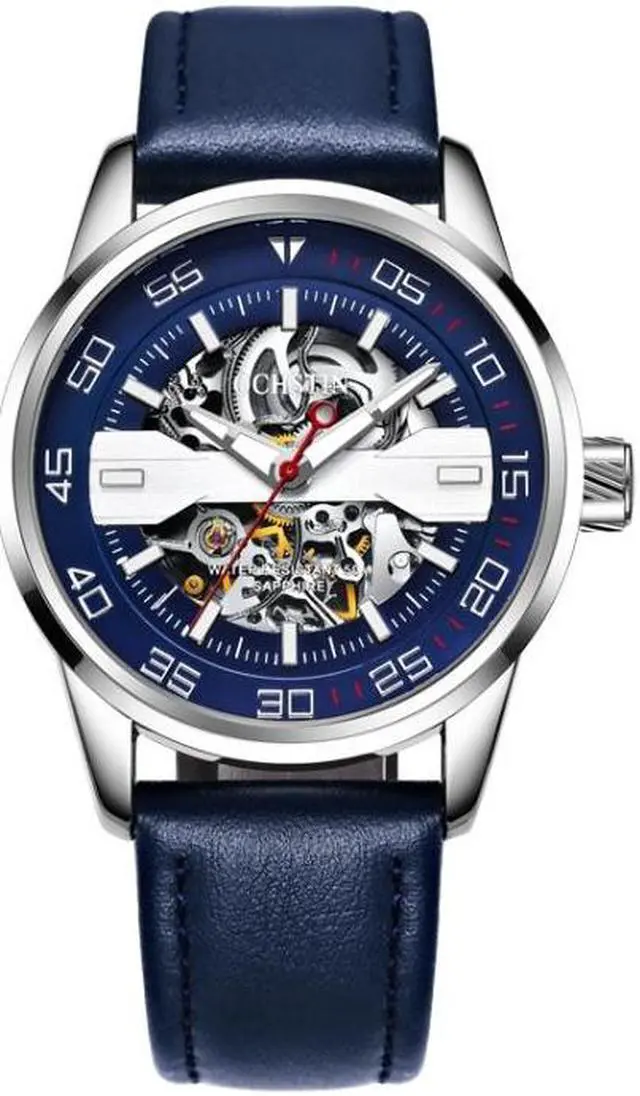 OCHSTIN 62002A Master Series Hollow Mechanical Men Watch (Silver-Blue) Black