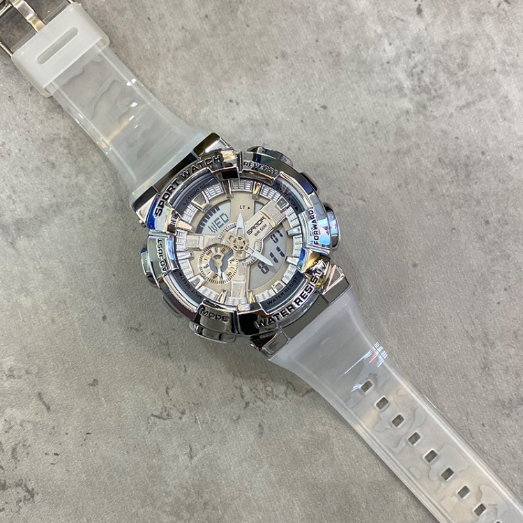 SANDA 9004 Men Symphony Dual Display Synchronous Outdoor Luminous Electronic Multifunction Watch (Transparent Silver)