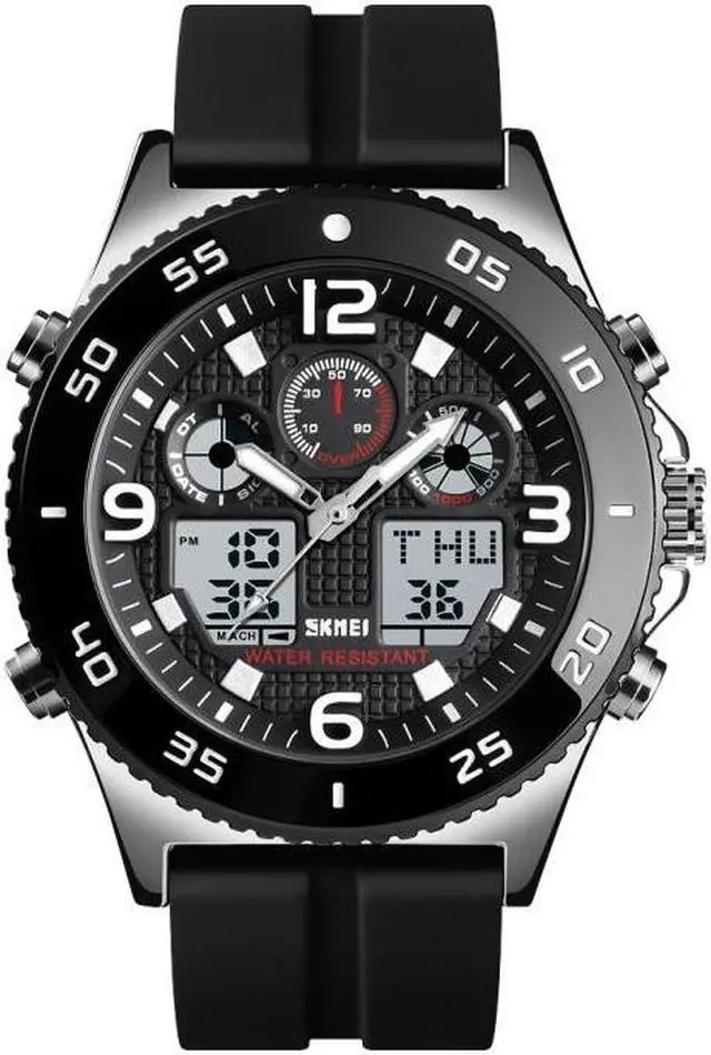 SKMEI 1538 Multi-Function Time Large Dial Steel Belt Men Casual Sports Electronic Watch (Silver-Silicone Belt)