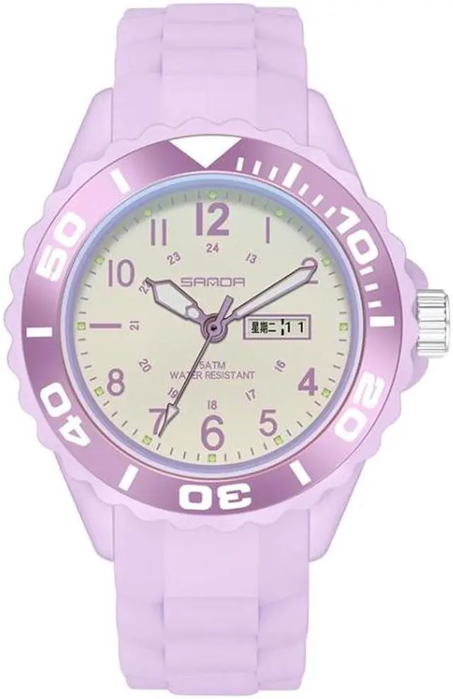 SANDA 1053 Womens TPU Strap Dual Display Waterproof Electronic Watch (Taro Purple)