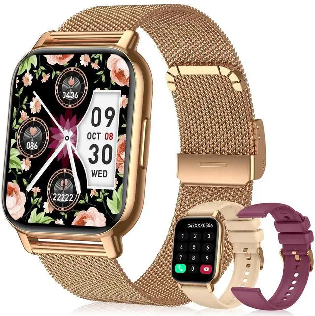 Smart Watch for Women(3 Bands), Smartwatch Fitness Tracker with Bluetooth Calls & AI Voice Control, 1.85 HD Screen, Heart Rate/SpO2 Monitor, Sleep Tracker, Compatible with Android iOS, Gold