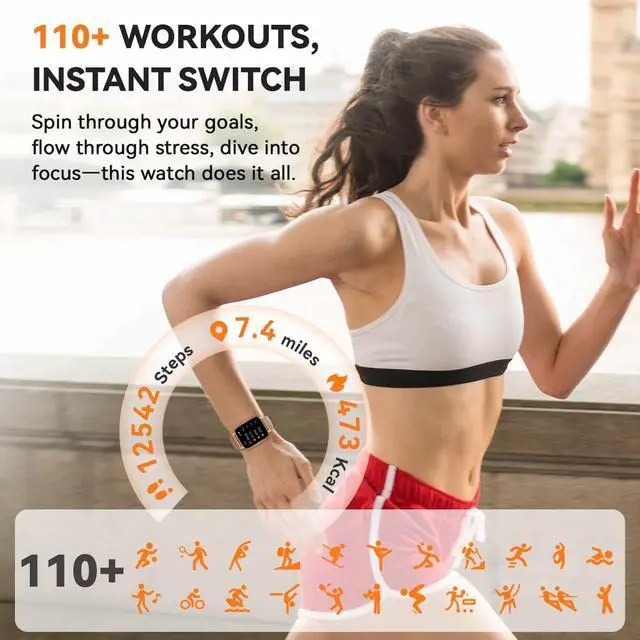 112+ Sports Modes & IP68 Waterproof With 112+ sport modes from fitness training/Pilates tracking to precise Yoga/Power Walking metrics. Our smart watch record real-time heart rate, calorie burn, distance & duration. IP68 waterproof defense withstands heavy rain, intense sweat, and accidental submersion , making it your 24/7 workout partner.